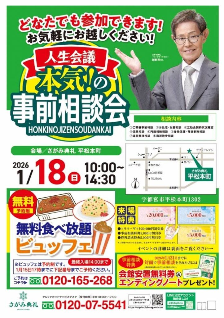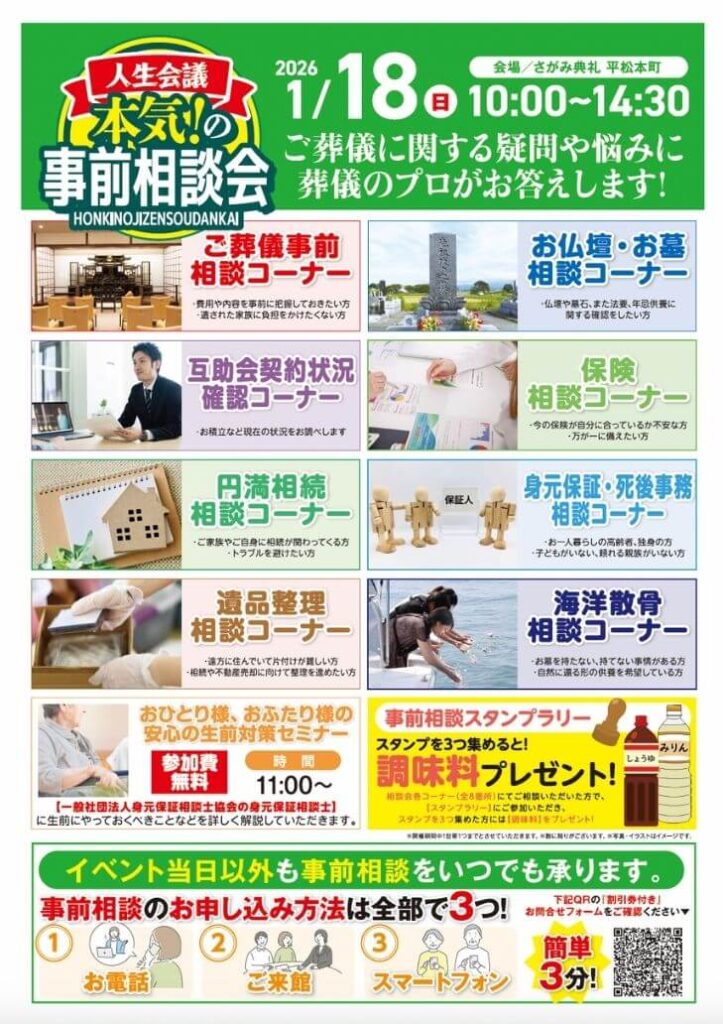 さがみ典礼 平松本町にて「事前相談会」を開催いたします。無料セミナーも同時開催。是非この機会に皆様お誘い合わせの上ご来館ください。