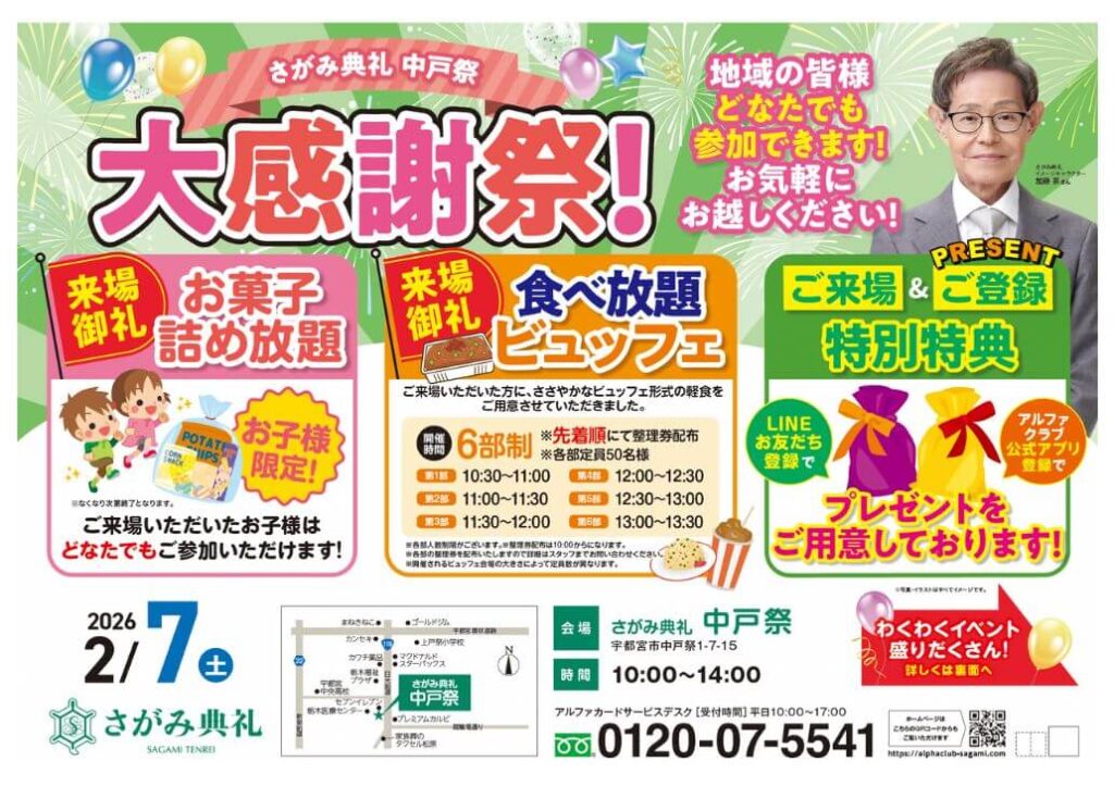 さがみ典礼 中戸祭にて「大感謝祭!」を開催いたします。イベント盛りだくさんとなっておりますので、地域の皆様どなたでも参加できます!お気軽にお越しください!